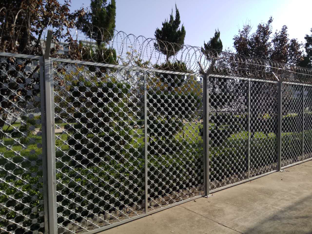 監(jiān)獄鋼網(wǎng)墻所采用的生產(chǎn)FHB/Q1268焊接標(biāo)準(zhǔn)生產(chǎn),以低碳鋼絲,鋁鎂合金編織焊接生產(chǎn), 用于公路,鐵路,飛機場,住宅小區(qū),港口碼頭,花園,飼養(yǎng),畜牧等的圍欄防護。整體浸塑處理,防盜螺栓連接。
